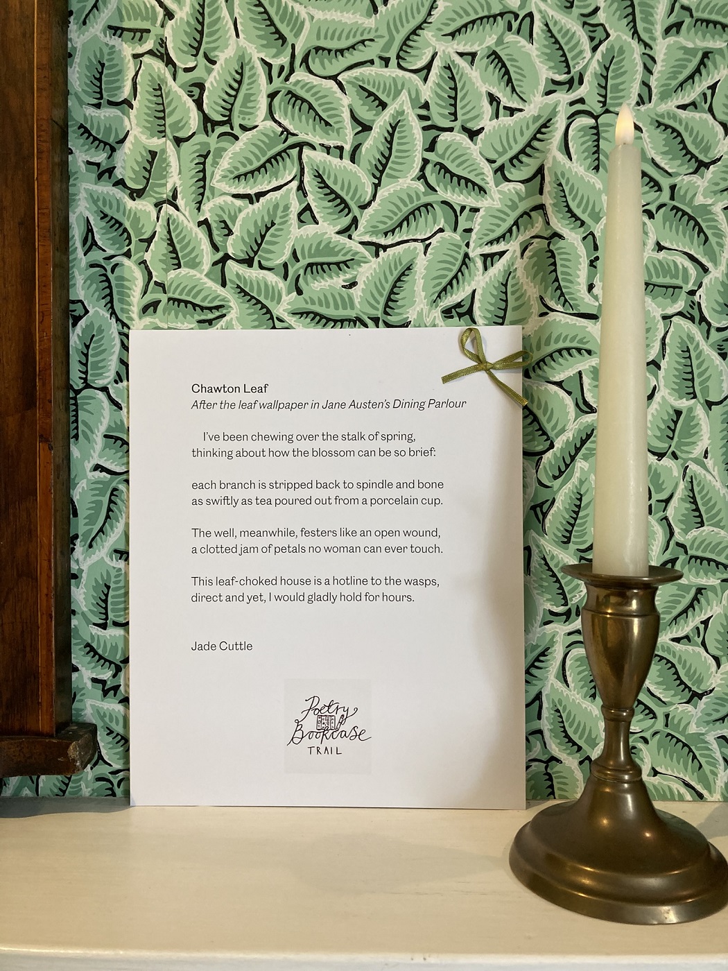 This special artwork, displayed inside Reverend Austen’s bureau bookcase, brings together poems that we know Jane loved, either because they are mentioned in her letters, or because she references them in her novels. The poems were chosen for us by award-winning poet Maura Dooley, and the artwork itself was created by our very own Jessica Halmshaw.