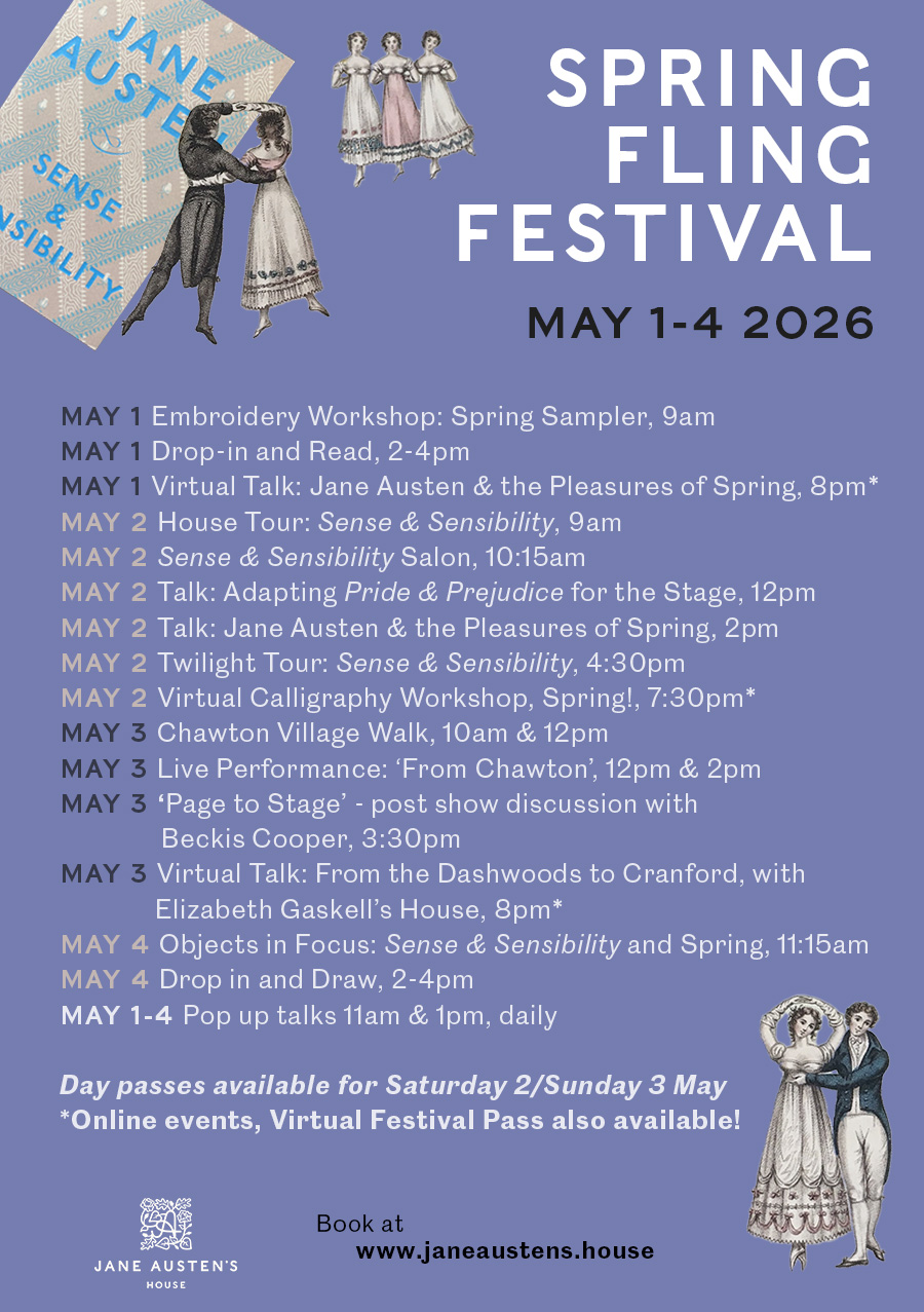 We’re also looking forward to a delightful talk on Jane Austen and the Pleasures of Spring, reflecting on springtime scenes and themes of hope and renewal in Jane Austen’s novels, letters and life story – this talk will be delivered both in person and online.