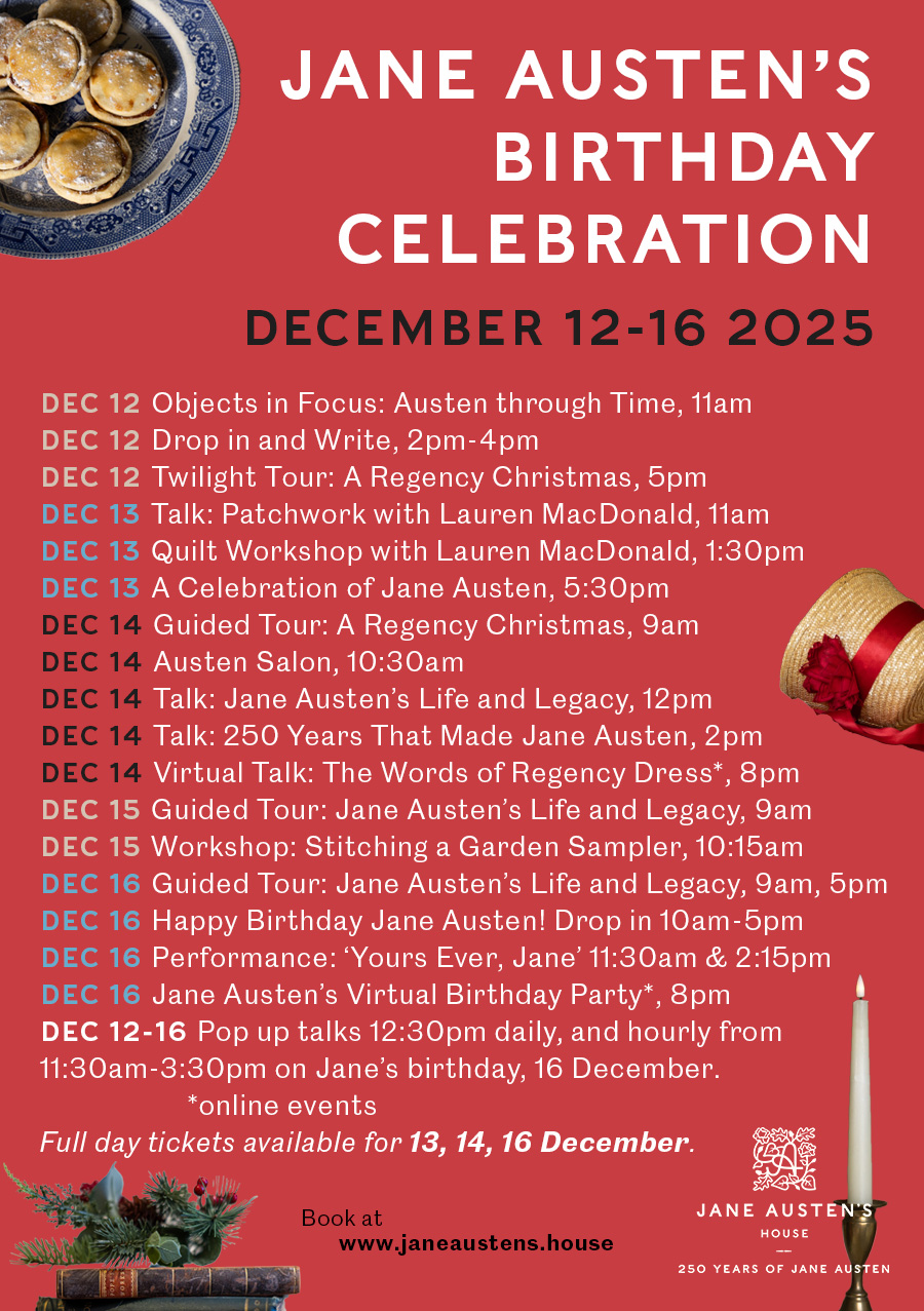Thereâs something for everyone! Find out more and see the full Jane Austen’s Birthday Celebration line-up here.Â